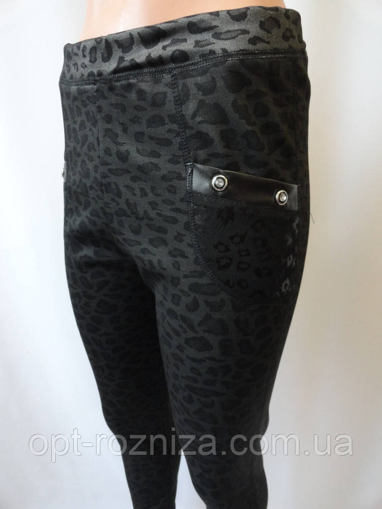 Жіночі лосини темно-сірого кольору з леопардовим малюнком.